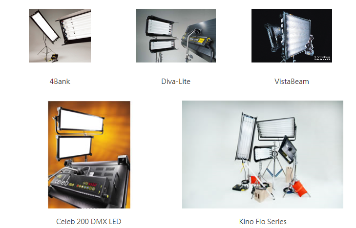 Kino Flo現(xiàn)在有19個(gè)熒光燈和LED產(chǎn)品系列,能滿足于各種不同的影視制作需要。影視行業(yè)人員熟悉的包括最為經(jīng)典的4Bank 系列,電視臺(tái)演播室最常用的ParaBeam和VistaBeam系列,還有在電視新聞和紀(jì)錄片制作中最為流行的Dive-Lite系列。